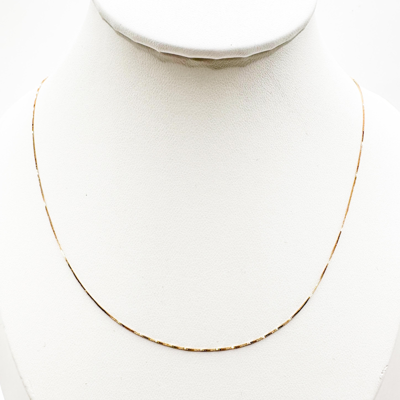 Cadena veneciana de oro de 18K de 45 cm. Diseño sólido, con eslabones cuadrados apretados y de presencia robusta.